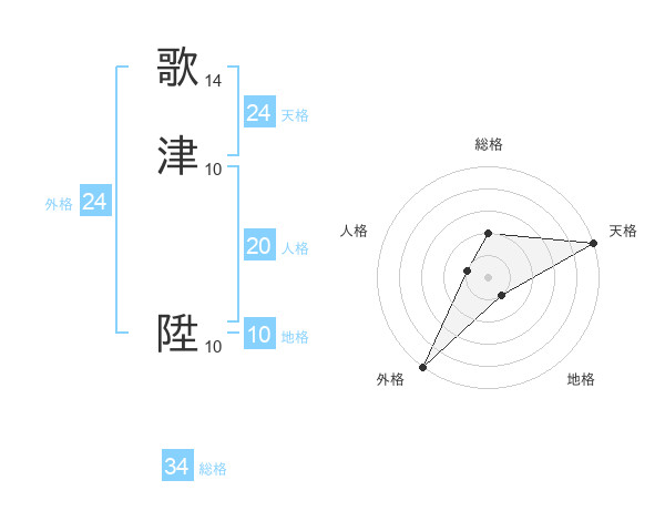 歌津 陞さんの総格は34画の2点!