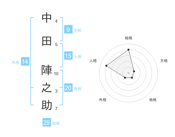 中田 陣之助さんを姓名の画数から五運を鑑定