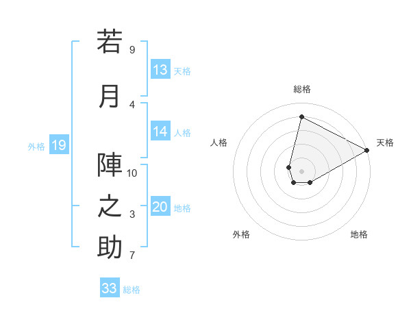 若月 陣之助さんの総格は33画の4点!