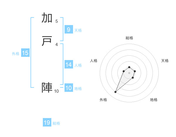 加戸 陣さんを姓名の画数から五運を鑑定