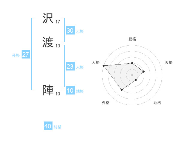 沢渡 陣さんの天格は30画の2点!