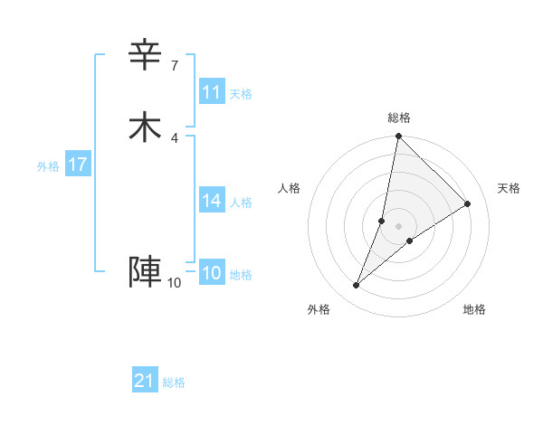 辛木 陣さんの天格は11画の4点!