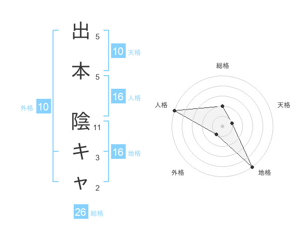 出本 陰キャさんの地格は16画の5点!