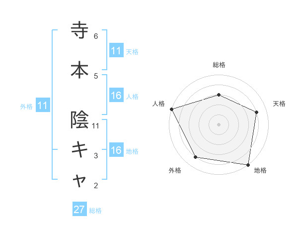 寺本 陰キャさんの天格は11画の4点!