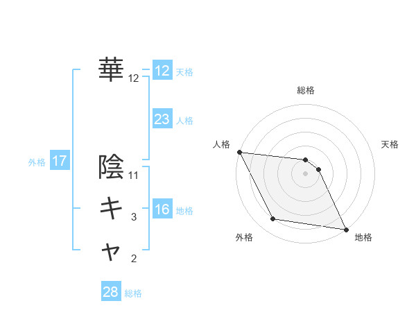 華 陰キャさんの外格は17画の4点!
