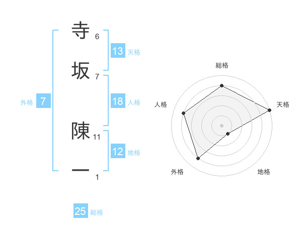 寺坂 陳一さんを姓名の画数から五運を鑑定