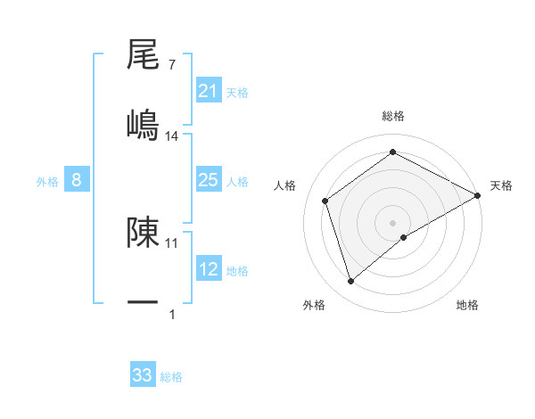 尾嶋 陳一さんを姓名の画数から五運を鑑定