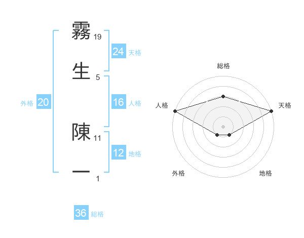 霧生 陳一さんの天格は24画の5点!