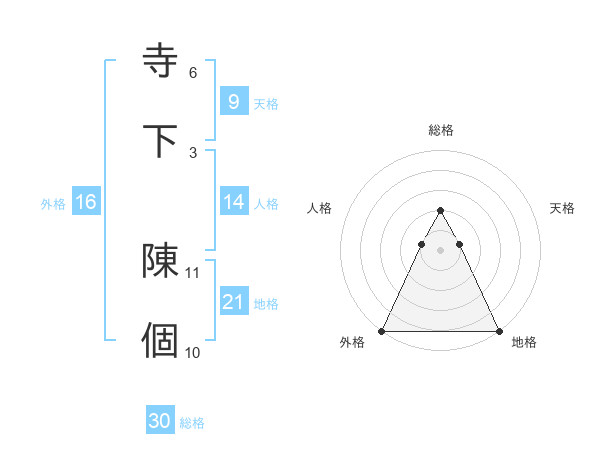 寺下 陳個さんを姓名の画数から五運を鑑定