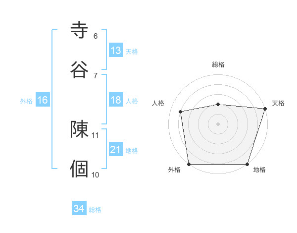 寺谷 陳個さんの外格は16画の5点!