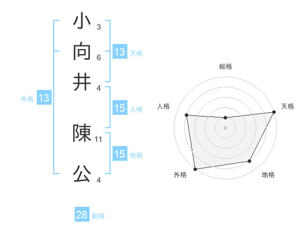 小向井 陳公さんの外格は13画の5点!