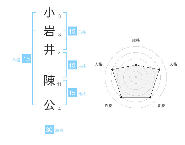 小岩井 陳公さんの総格は30画の2点!