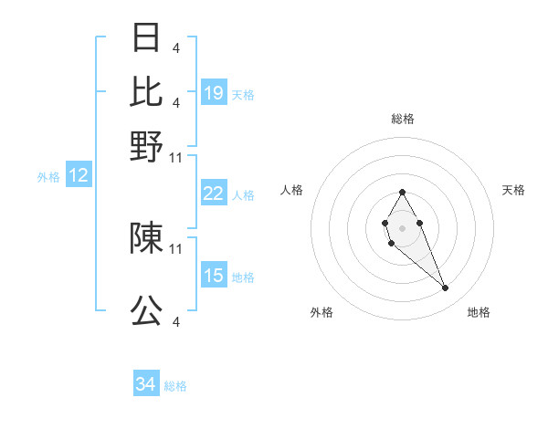 日比野 陳公さんを姓名の画数から五運を鑑定