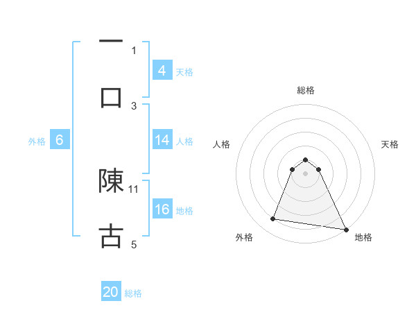 一口 陳古さんの総格は20画の1点!