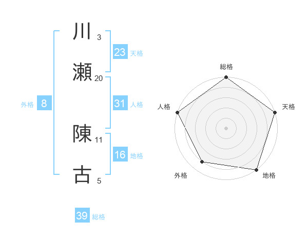 川瀬 陳古さんの天格は23画の5点!