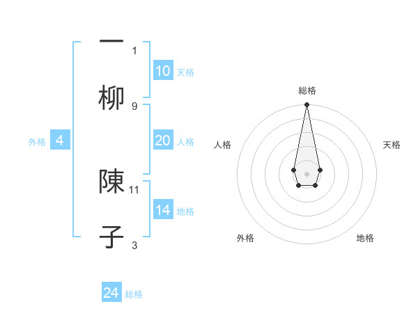 一柳 陳子さんを姓名の画数から五運を鑑定