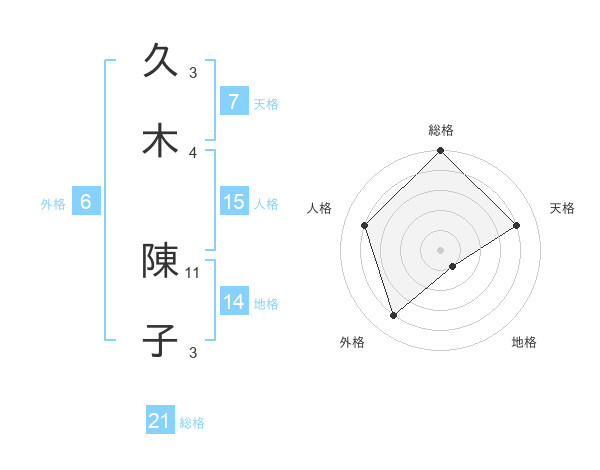 久木 陳子さんの総格は21画の5点!