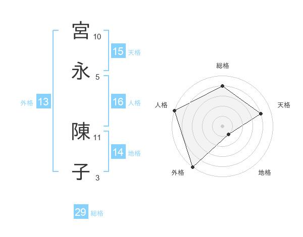 宮永 陳子さんを姓名の画数から五運を鑑定