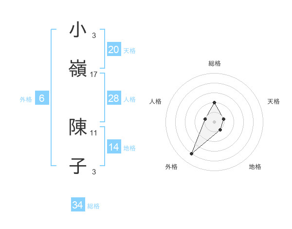 小嶺 陳子さんを姓名の画数から五運を鑑定
