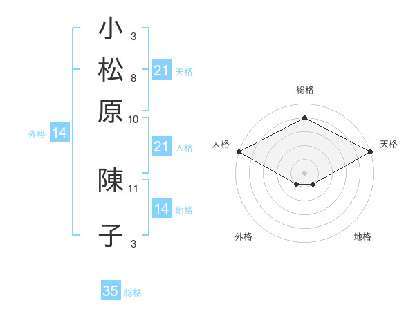 小松原 陳子さんの天格は21画の5点!