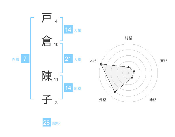 戸倉 陳子さんの天格は14画の1点!