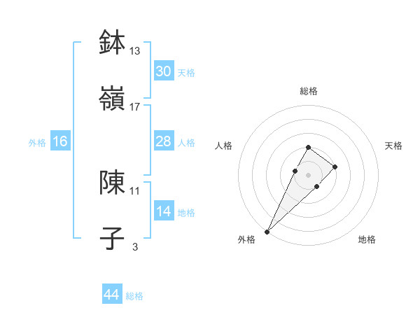鉢嶺 陳子さんの天格は30画の2点!