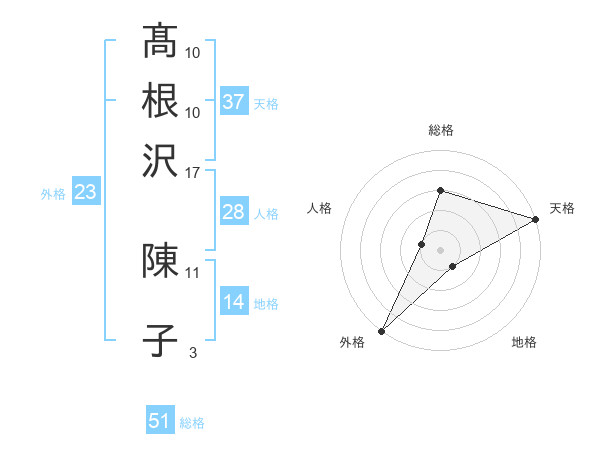 髙根沢 陳子さんを姓名の画数から五運を鑑定