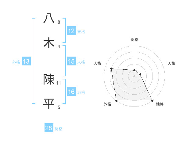 八木 陳平さんの総格は28画の1点!