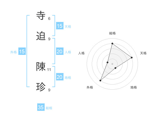 寺迫 陳珍さんの天格は15画の4点!