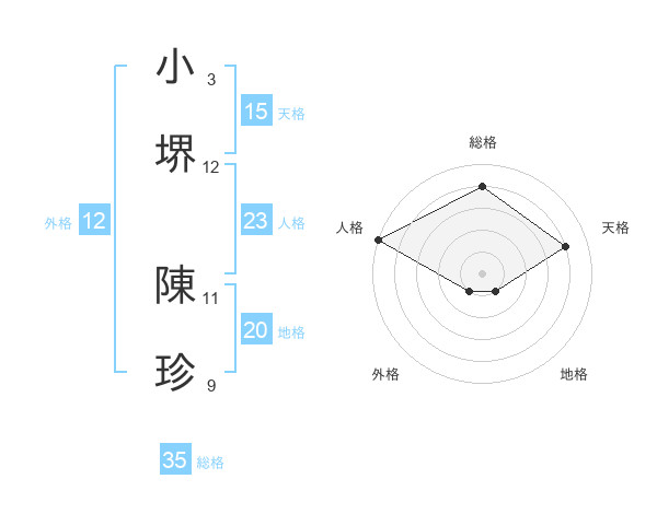 小堺 陳珍さんを姓名の画数から五運を鑑定