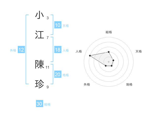 小江 陳珍さんの総格は30画の2点!