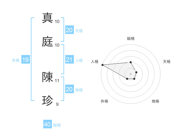 真庭 陳珍さんの天格は20画の1点!