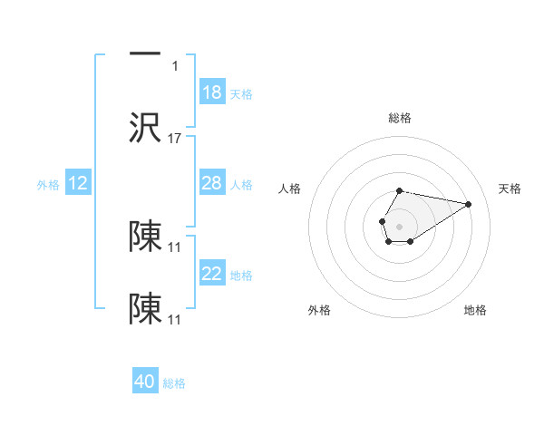 一沢 陳陳さんを姓名の画数から五運を鑑定