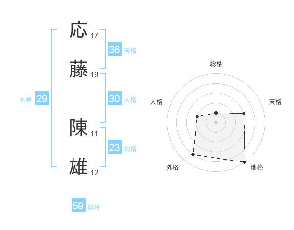 応藤 陳雄さんを姓名の画数から五運を鑑定