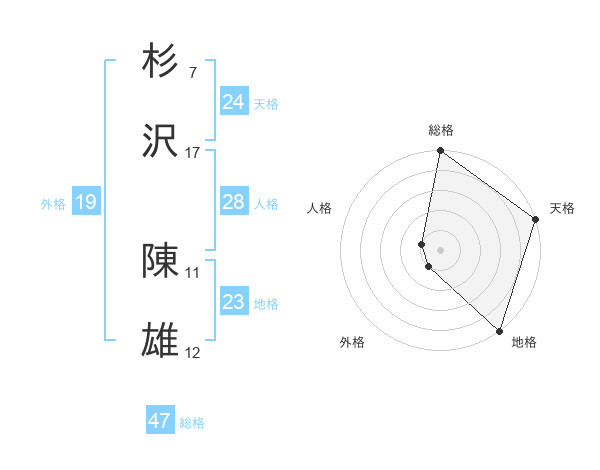 杉沢 陳雄さんを姓名の画数から五運を鑑定