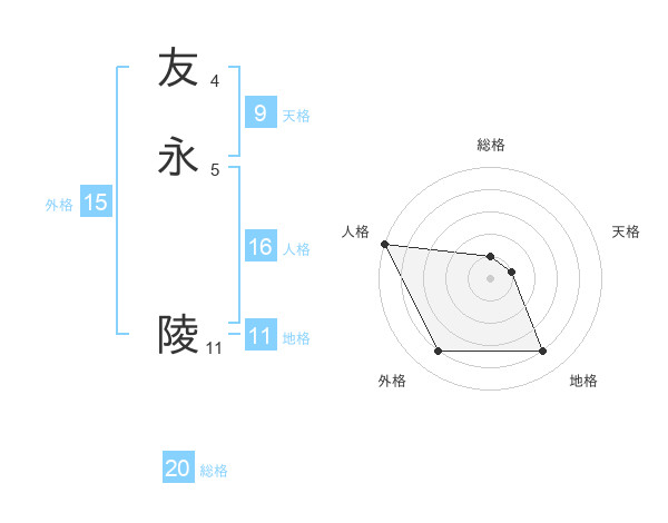 友永 陵さんの総格は20画の1点!