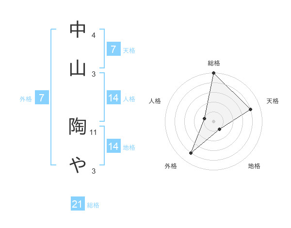 中山 陶やさんの総格は21画の5点!
