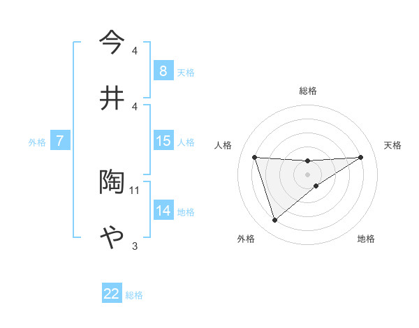 今井 陶やさんの天格は8画の4点!
