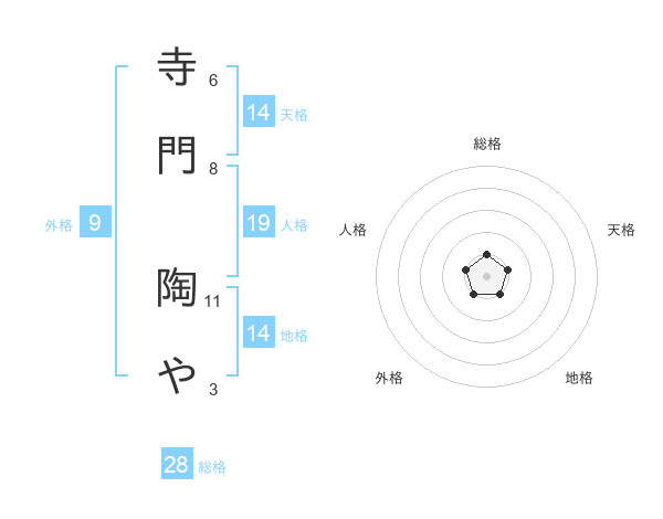 寺門 陶やさんを姓名の画数から五運を鑑定