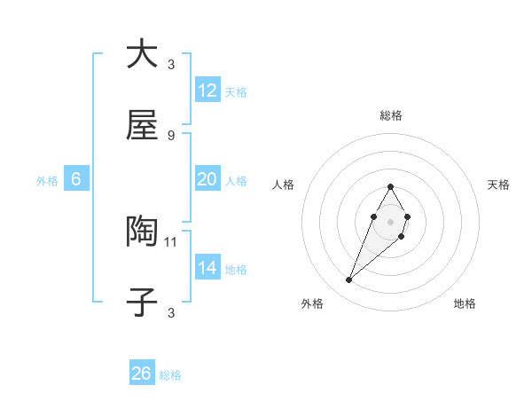 大屋 陶子さんを姓名の画数から五運を鑑定