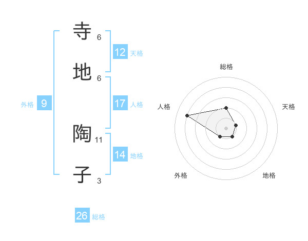 寺地 陶子さんを姓名の画数から五運を鑑定