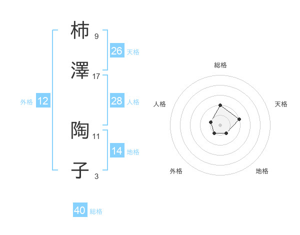 柿澤 陶子さんを姓名の画数から五運を鑑定