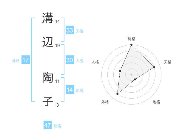 溝辺 陶子さんの総格は47画の5点!
