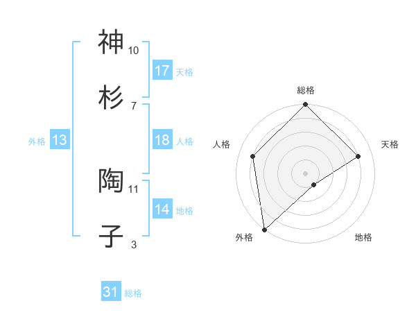 神杉 陶子さんを姓名の画数から五運を鑑定