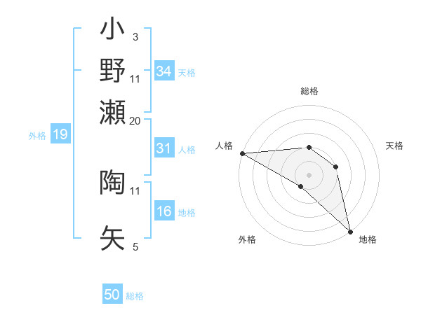 小野瀬 陶矢さんを姓名の画数から五運を鑑定