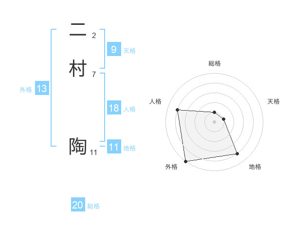 二村 陶さんの総格は20画の1点!