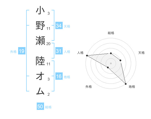 小野瀬 陸オムさんを姓名の画数から五運を鑑定