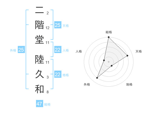 二階堂 陸久和さんの総格は47画の5点!