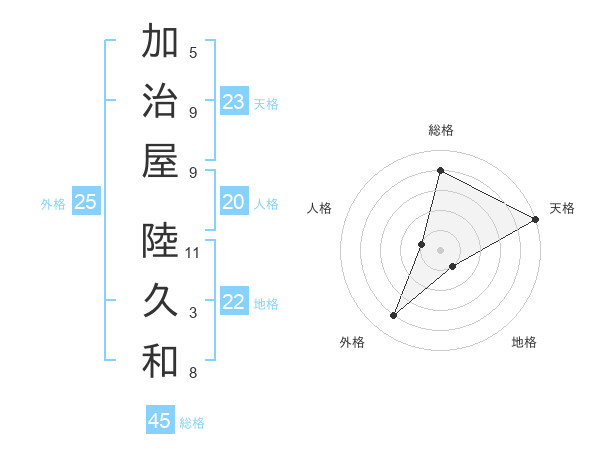 加治屋 陸久和さんを姓名の画数から五運を鑑定