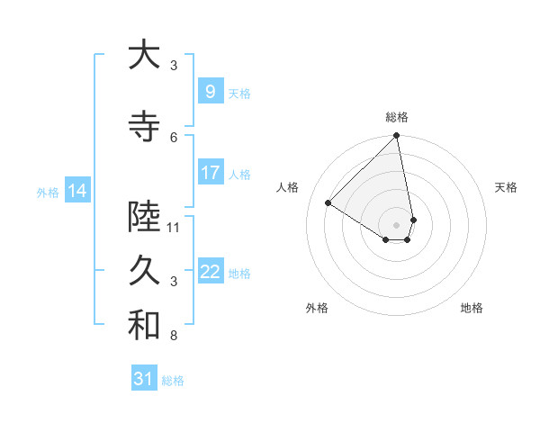 大寺 陸久和さんの総格は31画の5点!
